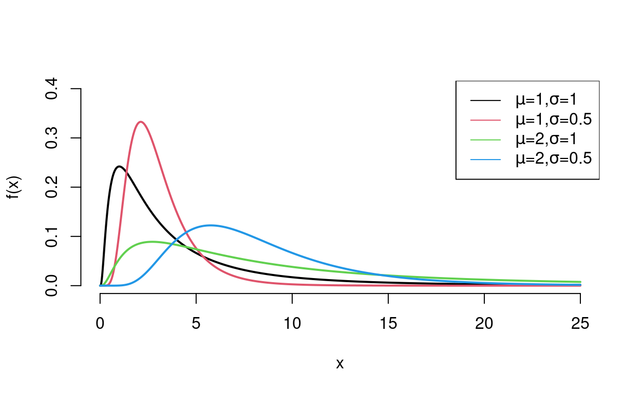 Below, you can find the densities of log-normal distributions with different parameter values.